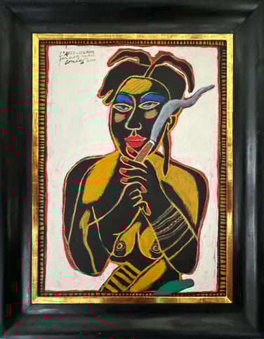 Discover this stunning masterpiece by Corneille, created during his journey to Cuba in 2000. This exceptional painting pays tribute to the vibrant spirit of the Caribbean, a region deeply cherished by the artist.