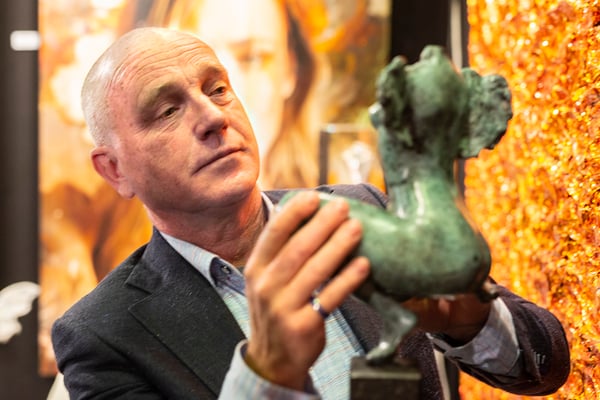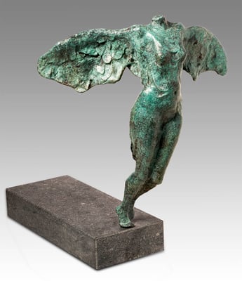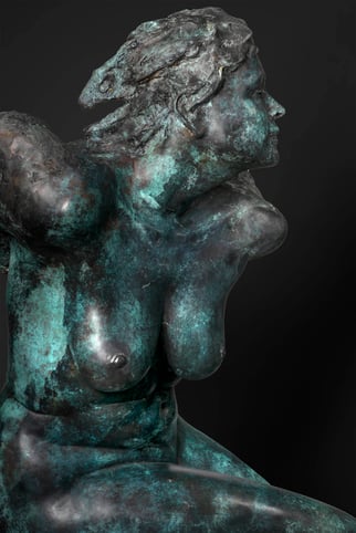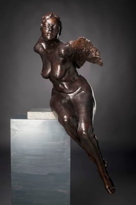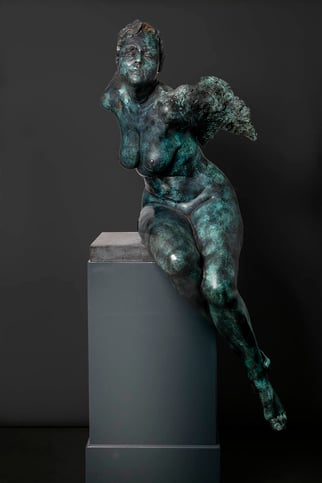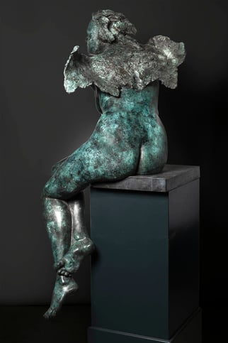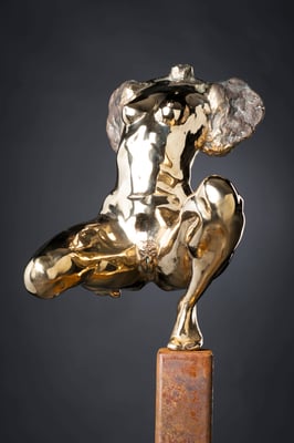 His work defines itself as a dynamic collection of movement, balance, gravity, with a touch of Baroque in its modern femininity and mythical elements. The entire process from wax to bronze (mould-making, chasing, spruing, patinating and placing the work on a pedestal) are all done in his own studio. Only the actual casting of the bronze is outsourced to several different bronze foundries, depending on the artist’s wishes.