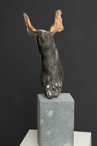 Godfried Dols, bronze, Piede di Perseo, edition: 6, Italian bronze and gold leaf. Pedestal: Anrochter grunstein. EUR 5500.