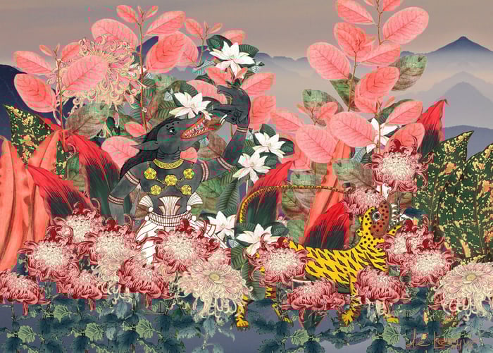 She inherited her love for nature and wild life from her parents. Her surname is de Leeuw (the Lion) and you see these animal and other felines frequently in her work and designs. She combines inspiration from her own travels with her imagination and fictional influences to create a unique world of imagination. The last decades have been an artistic journey through the different expressions of art that now come together in her work.
