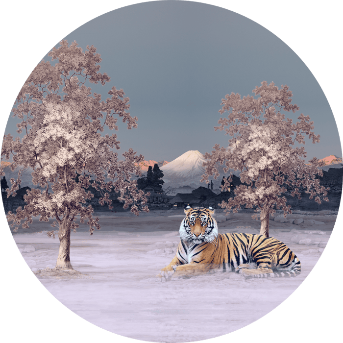 I love the Artist Bob Ross and his art video’s. For this artwork I got inspired by his dreamy landscapes. The tiger was a happy little accident. This round shaped artwork has a Liquid Gloss® finishing with subtle glittering dust in it that will make your experience different every time you pass by it.